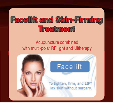 This process vacuums away metabolic waste and other toxins that impair health, vitality, and facial skin tone. In addition, it increases collagen production which improves the elasticity of the skin and reduces wrinkles. Improved drainage within the lymphatic system restores a youthful clarity. The acupuncture facelift nurtures the healing of the skin's structure. Strong and healthy structure leads to taut skin with vitality - youthful and radiant skin. Patients often ask: "Does it hurt?" Acupuncture is a therapeutic procedure that is virtually risk-free and painless. The disposable needles we use are very fine and in most cases, you will not feel the insertion. Again, the acupuncture facelift is non-invasive and non-surgical. However, it is more than a cosmetic procedure - its results are lasting and also promote health. The stimulation of the lymphatic system induces deep relaxation - the perfect antidote to stress. Every individual is different and we will explain what you can expect when we meet. |